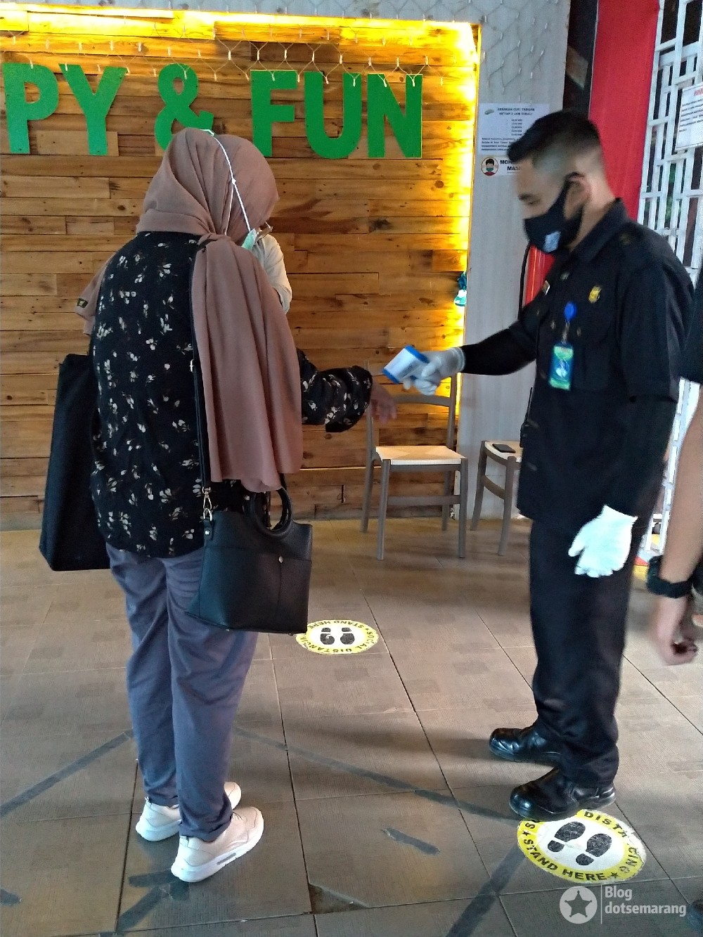 Bila dari luar sudah ketat untuk penegakaan protokol kesehatan, maka di dalam juga. Banyak himbauan yang ditaruh dan ditempel agar tetap mematuhi protokol kesehatan.