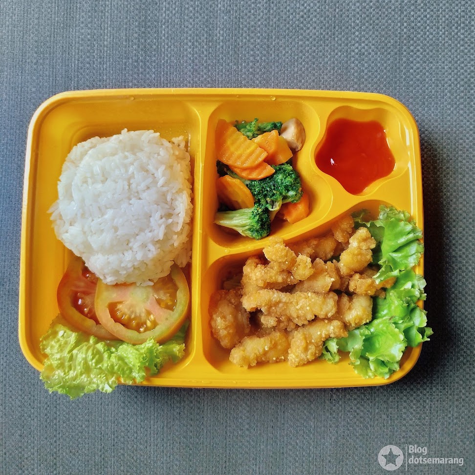 Dari 12 menu yang dikenalkan yang mengusung tagline 'Eat Out of The Box', kami mendapat kesempatan mencicipi 4 menu bento. Menu tersebut langsung diantar dengan mobil hotel. Mungkin yang pesan disekitar hotel, bakal diberikan bebas biaya pengantaran.