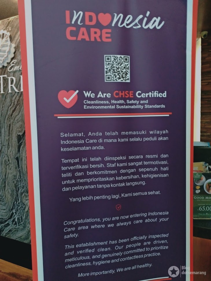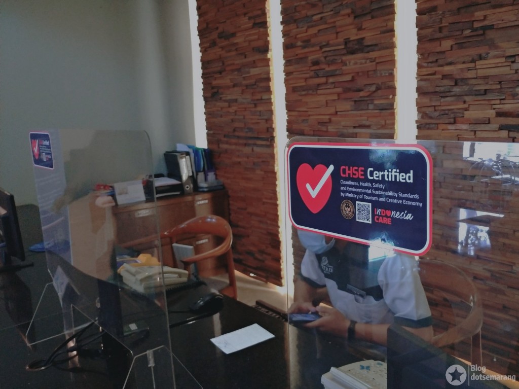 Selain sudah menerapkan protokol kesehatan yang menjadi rekomendasi wajib agar tamu tidak merasa khawatir, hotel juga sudah mengantongi sertifikat CHSE yang memiliki singkatan Clean, Health, Safety, dan Environment atau Kebersihan, Kesehatan, Keselamatan, dan Kelestarian Lingkungan.