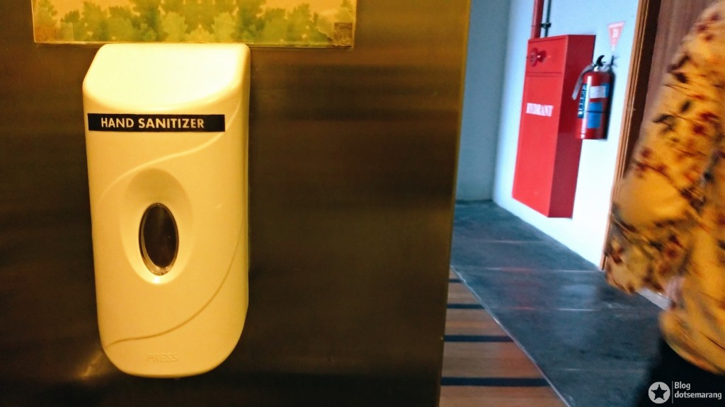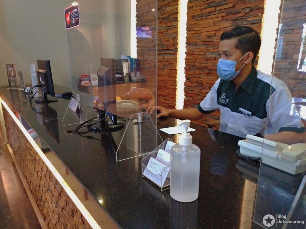 Sebagai mitra, pihak hotel sudah memiliki standar protokol kesehatan yang sering kami lihat seperti pengecekan suhu tubuh para tamu dengan alat pengukur subuh (thermogun), wastafel portable, semua staf dan tamu wajib menggunakan masker di area hotel, serta menyediakan hand sanitizer di berbagai titik area publik termasuk di meja resepsionis.