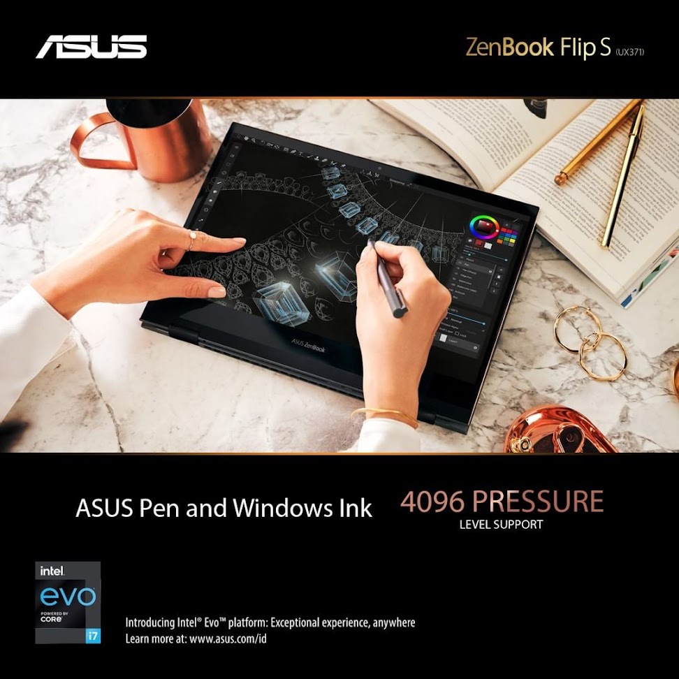 Dirilis sudah dengan menggunakan prosesor intel generasi ke-11, ZenBook Flip S (UX371) tampil sebagai salah satu laptop dengan kualitas layar terbaik saat ini berkat penggunaan panel OLED beresolusi 4K UHD.