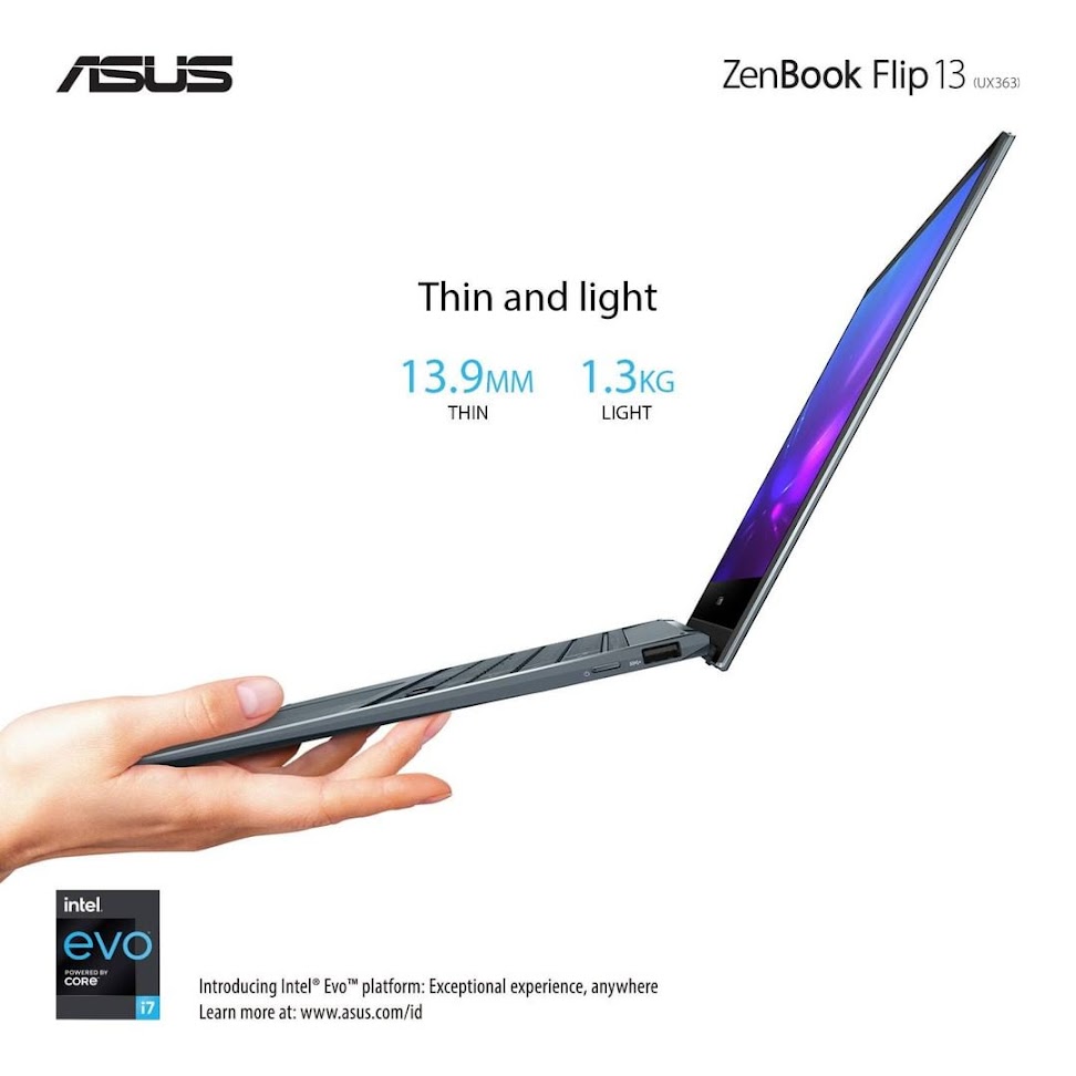Dengan berat 1,3 kg, ZenBook Flip 13 (UX363) datang dengan satu warna, yaitu pine grey. Dukungan konektivitas seperti Wi-Fi 6 dan Bluetooth 5,0 bakal memanjakan penggunanya. Apalagi dukungan memroinya mulai dari 8GB hingga 16GB.