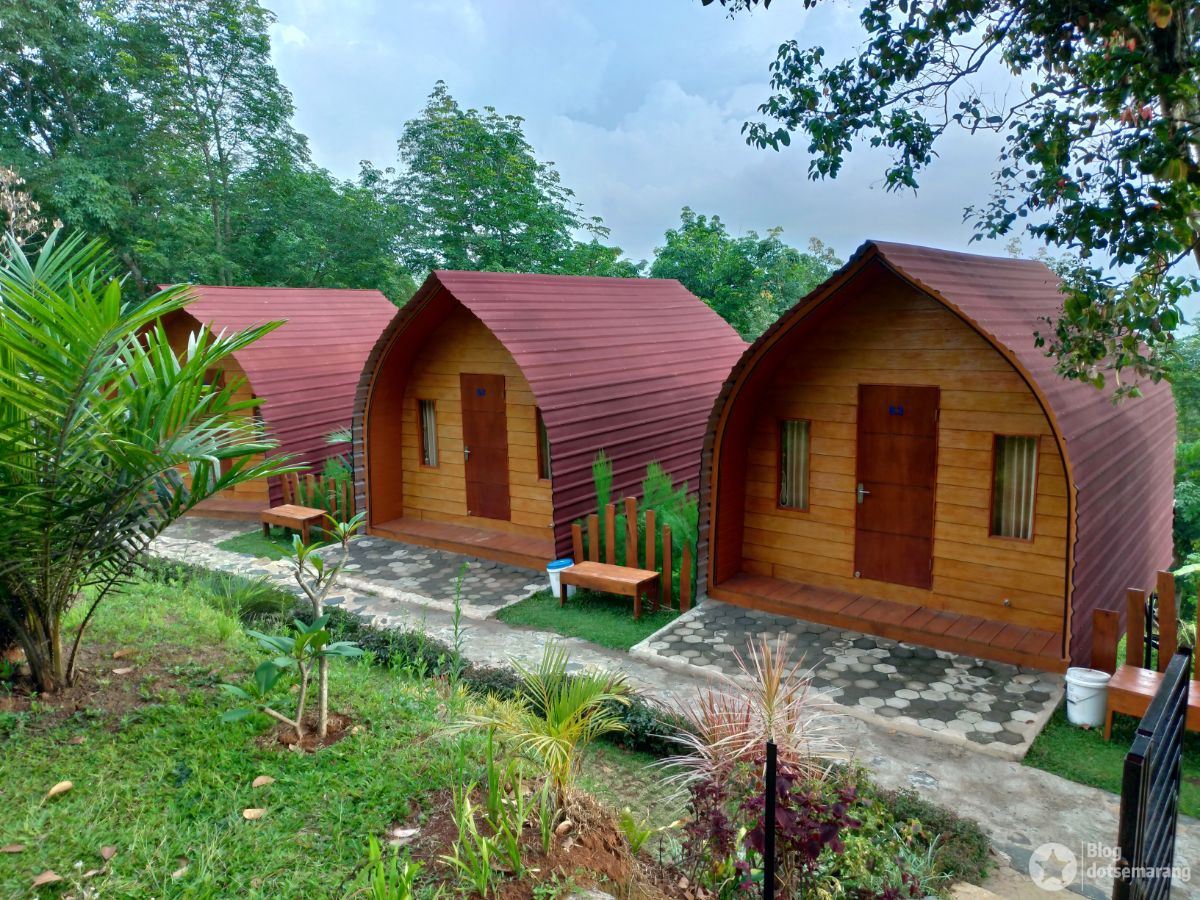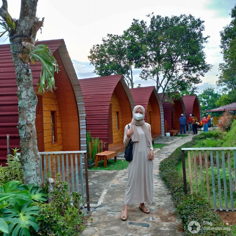 Saat sebagian rekan-rekan yang mengikuti kegiatan famtrip menikmati area lainnya, kami langsung tertarik mengikuti salah satu karyawan yang mengajak tur ruangan glamping yang dari jauh sudah terlihat bangunan berwarna merah dan cokelat.