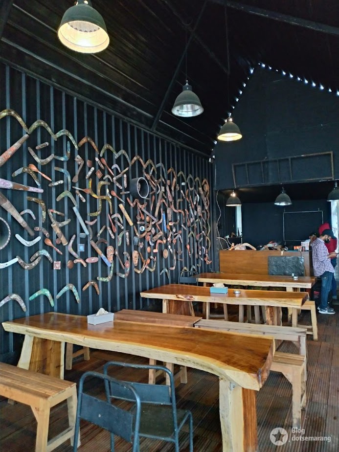 Ini juga tambah unik, saat pengunjung masuk, nanti akan disuguhkan pemandangan bumerang yang ada di dinding bangunan yang berada di arah kiri mata memandang.