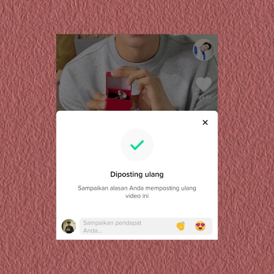 Percobaan kedua, kami menahan diri untuk tetap di video yang kami repost. Hasilnya? Ada buble chat keluar dari nama pemilik video. Apakah cuma muncul seperti itu saja?