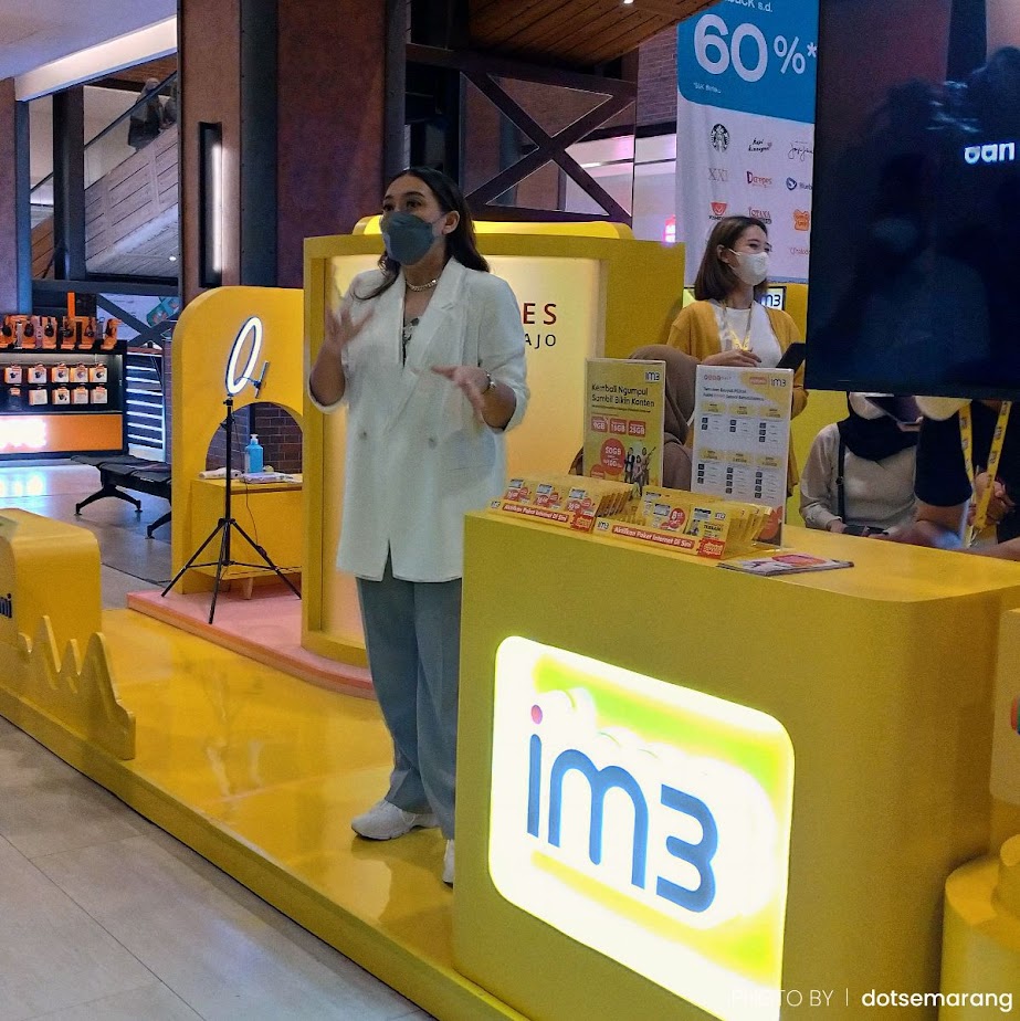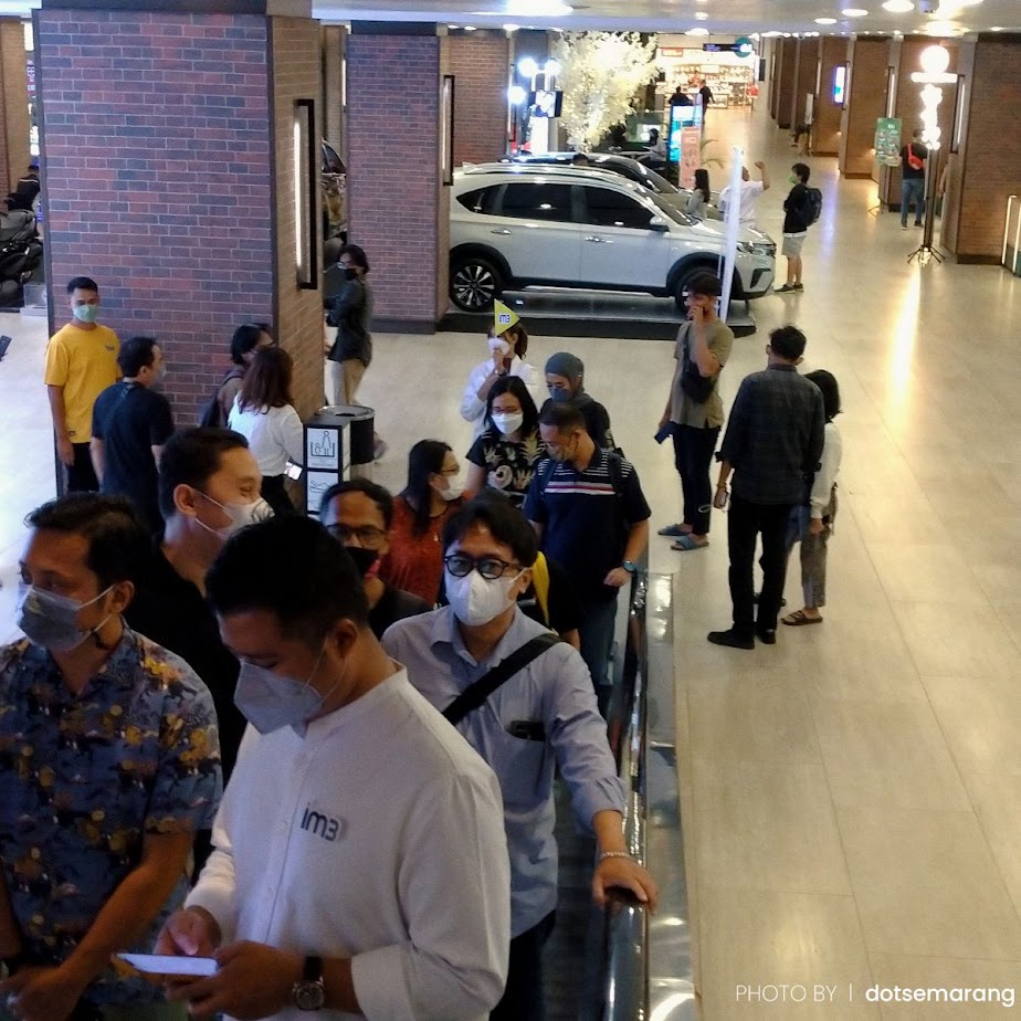 Pihak Indosat memandu kami berjalan beriringan seperti sebuah tur. Bahkan, pemandunya membawa bendera. Ini pengalaman menarik, apalagi di mal. Biasanya adegan gini saat acara famtrip.
