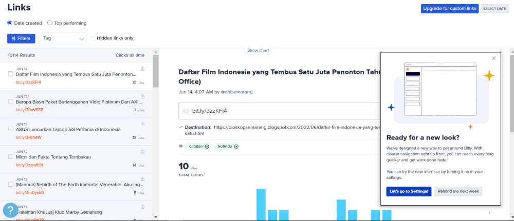 Terakhir kali membuat artikel tentang bitly pada tahun 2018. Lama juga ternyata. Dan saat itu, hanya menulis tentang jumlah statistik yang mendadak mendapatkan ratusan klik link. Tidak menyangka saja waktu itu.