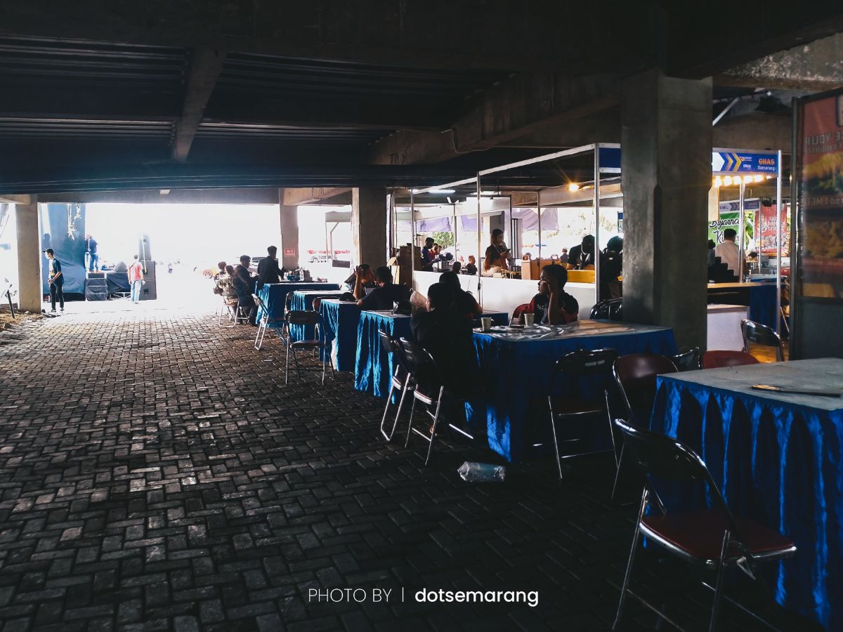 Bila merasa lapar dan haus, pengunjung sebenarnya bisa menikmati santap kopi di ruangan dalam. Tapi soal makan berat, harus ke bagian luar. Khususnya bagian bawah bangunan yang oleh penyelenggara disediakan stan kuliner. Lihat di sini foto-fotonya atau link di bawah juga ada.