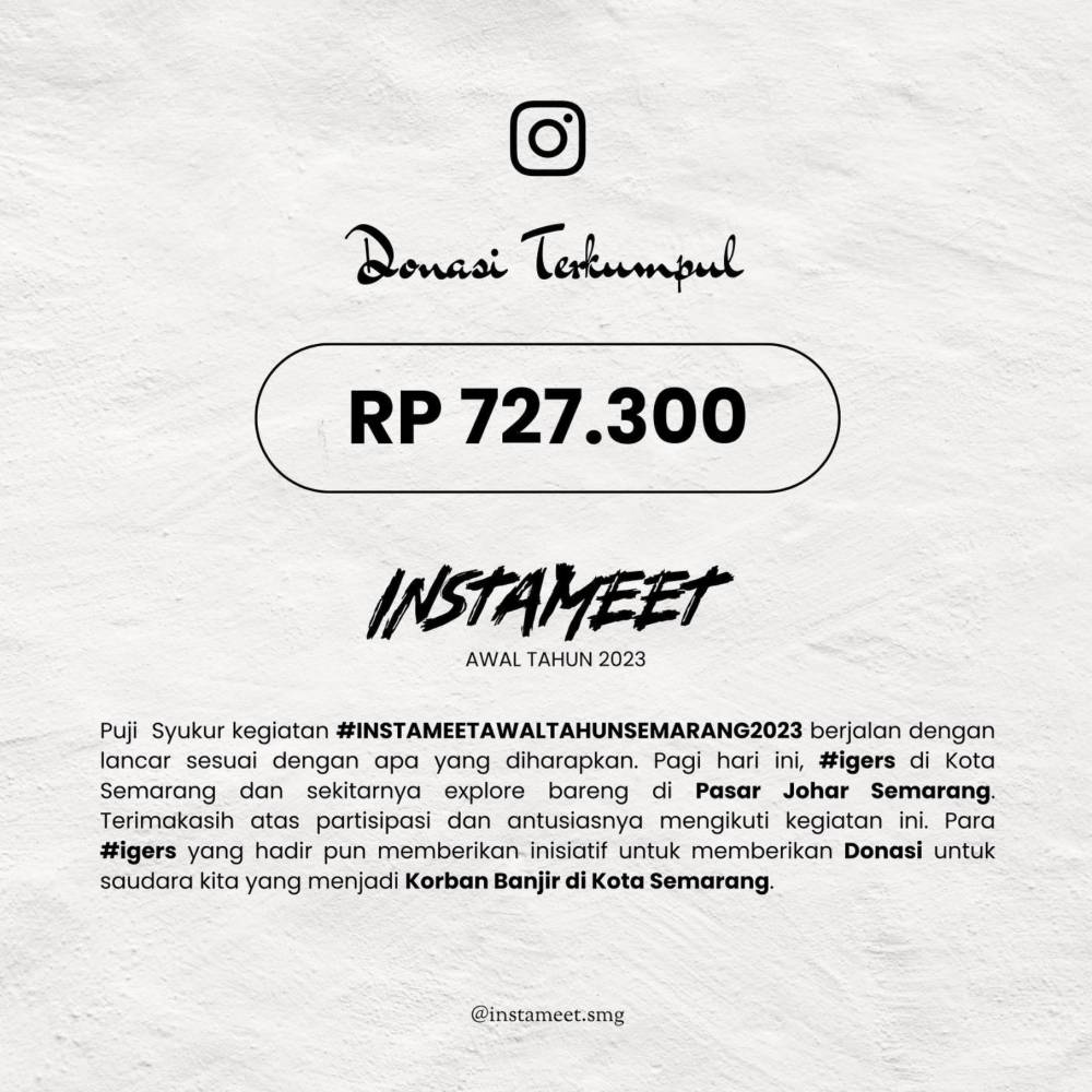 Tidak sekedar berkegiatan menjelajah, promosi dan silaturahmi, instameet Semarang juga mengajak peserta berdonasi untuk korban banjir yang melanda Kota Semarang awal tahun ini. Sesuatu hal yang positif untuk kegiatan ini.
