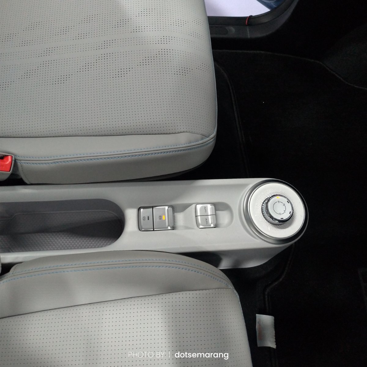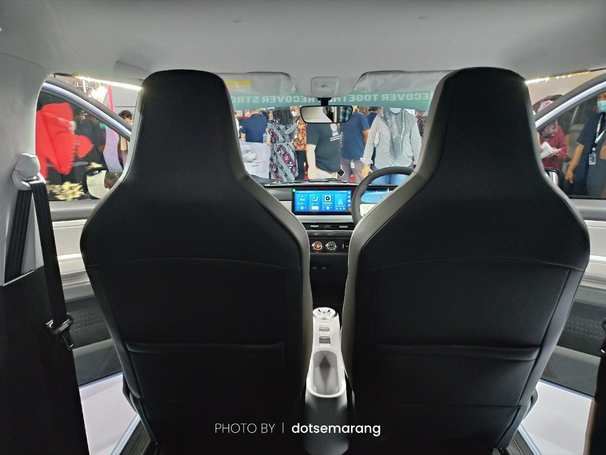 Karena ini kendaraan listrik, rasa penasaran tentang fitur-fiturnya seakan lebih besar saat sekedar melihat dari luar. Kami bisa mengakses bagian dalam yang ternyata bisa diisi 4 orang penumpang.