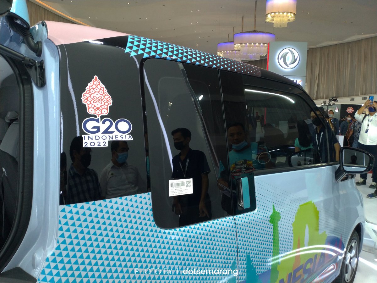 Air EV yang dipajang digelaran GIIAS Semarang ini merupakan kendaraan yang dipakai saat perhelatan Konferensi Tingkat Tinggi (KTT) G20 di Bali sebelumnya. Makanya masih ada logonya di Air EV.