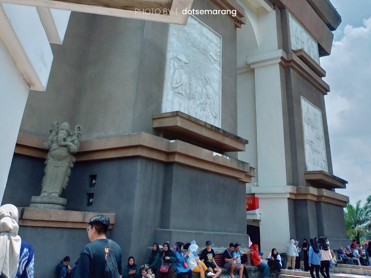 Lantas, bagaimana kami menuju bangunan utama yang memiliki tinggi 25 meter tersebut? Apakah harus nyeberang pikir kami sebelum akhirnya parkir kendaraan dan melihat orang-orang masuk ke bangunan kecil yang jadi akses ke bangunan utama.