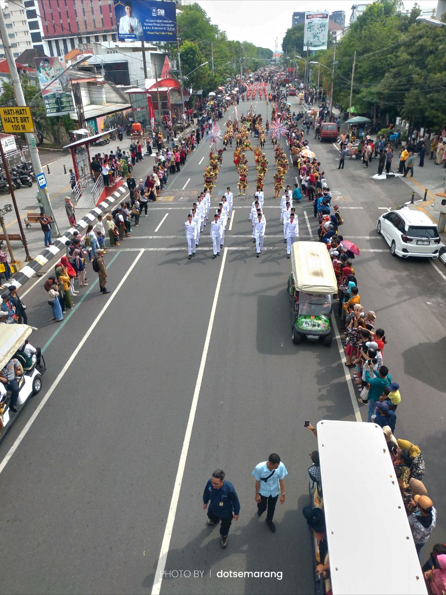 Kereta kuda yang membawa Wali Kota, Mbak Ita akhirnya melintas yang diikuti pasukan kuda dengan pakaian ala Jawa. Disusul kereta kuda lainnya yang biasanya diisi para pejabat.