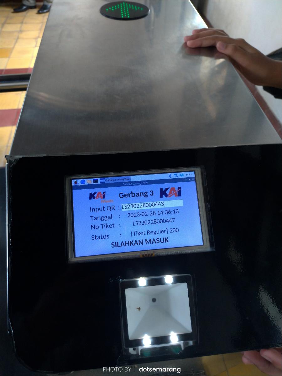 Saat tiba di ruangan masuk yang sudah terdapat alat pemindai, seperti gambar di atas, kertas tiket yang tadi dipegang lalu dipindai atau scan di sana. Tenang saja, ada petugas yang akan membantu apabila kesulitan.