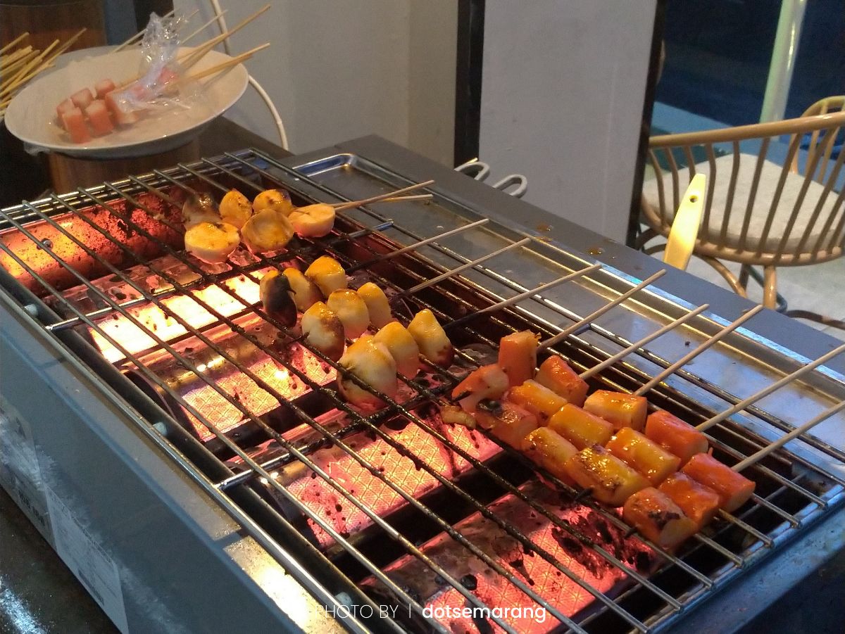 Jangan lupa untuk menengok ke luar ruangan restoran. Karena di luar, ada menu bakar-bakar yang menambah selera makan. Mulai dari sosis, daging ayam dan lainnya.