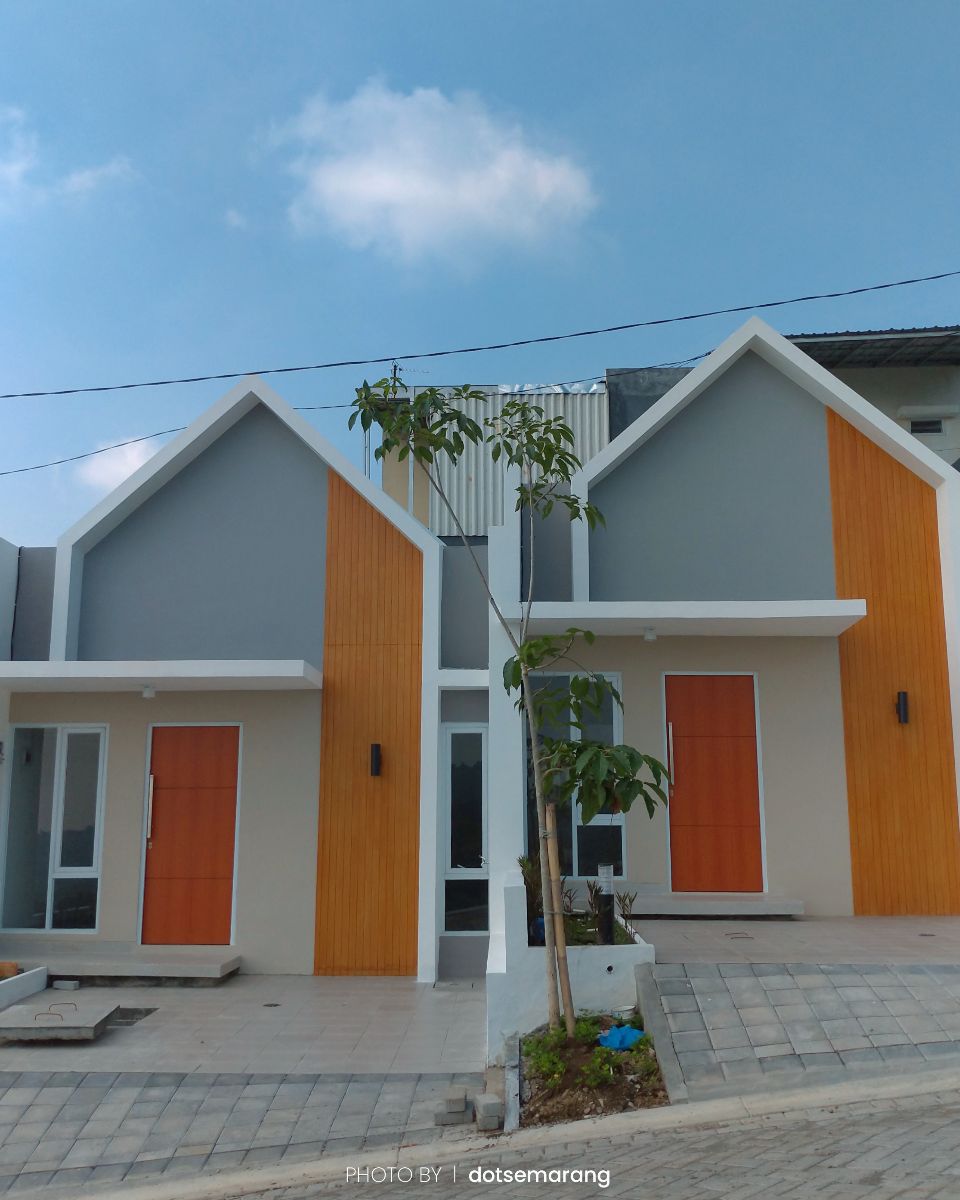 Tampak depan, bangunan rumahnya terlihat menarik dengan paduan warna orange (menurut kami) dan abu-abu. Salah satu rumahnya yang dijadikan contoh (pemasaran) boleh kami lihat ke dalam.
