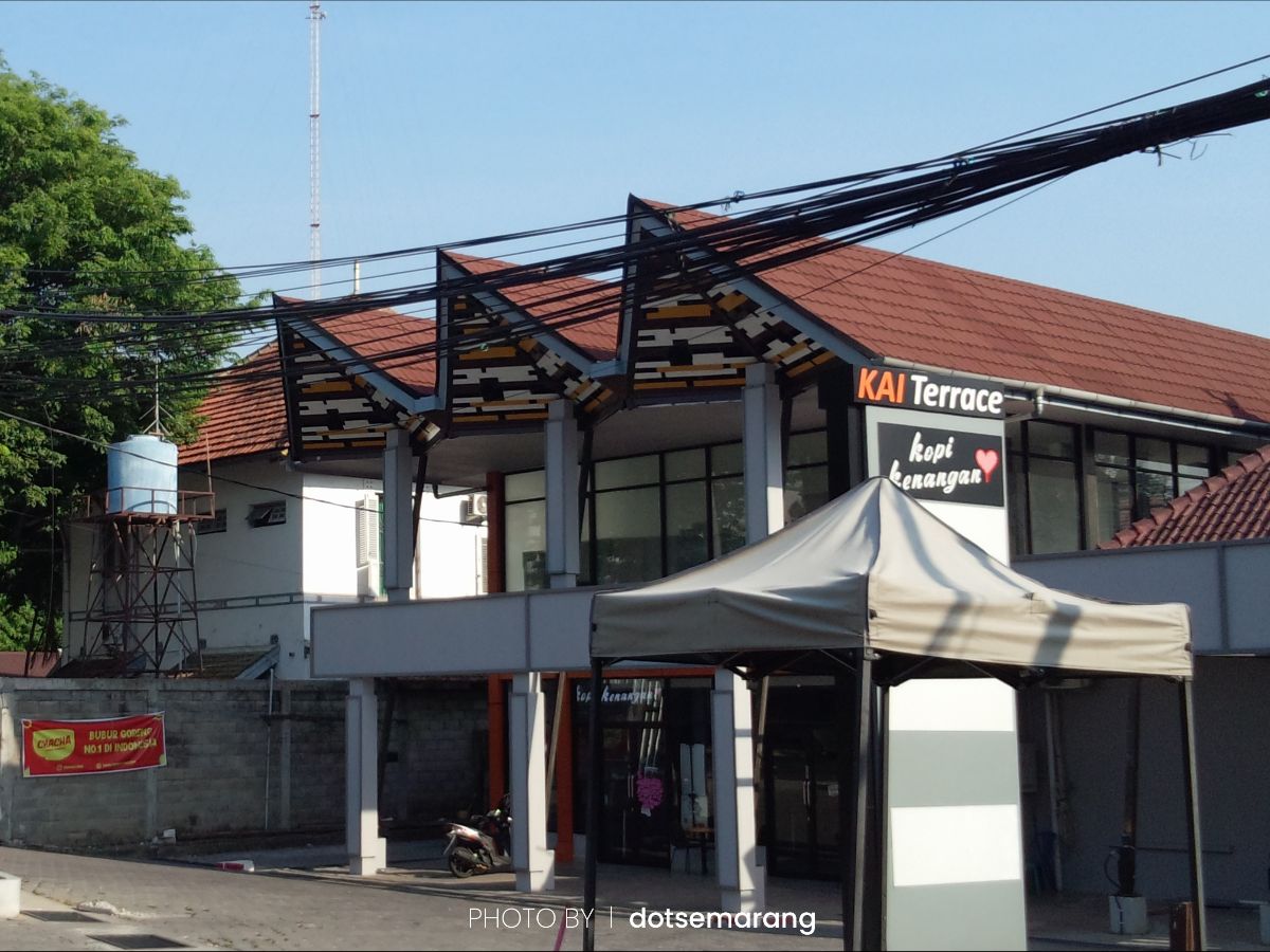 Ternyata benar, KAI Terrace satu keluarga dengan yang ada di dekat stasiun Tawang. Tampak depan, bangunannya cukup unik. Khas KAI Terrace seperti sebelumnya.