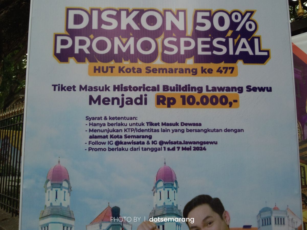 Sayangnya, tawaran diskon ini hanya untuk masyarakat Kota Semarang saja. Atau mungkin kamu punya KTP atau identitas seperti mahasiswa yang alamatnya ada di Kota Semarang.