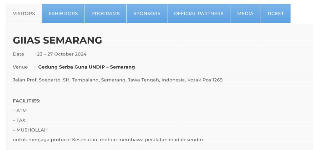 Informasi ini kami ketahui dari laman resminya (website) yang beralamat https://indonesiaautoshow.com/giias-semarang/. Di sana, sudah tertera info untuk acara di Kota Semarang yang akan berlangsung dari tanggal 23-27 Oktober.